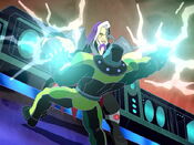 When the Loonatics are freed and escape, Optimatus takes all the villains he freed back to his headquarters with Duck tagging along for the ride. Zadavia then showed up in person to explain that the new villain none other than her brother.