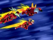 Zadavia is then zapped and starts to get dragged away by one ship. Ace tells the other Loonatics that they need to get out there into space to save their boss. The other Loonatics fly out in red jet-equipped spacesuits. Though they are able to take out a few ships they were not able to save Zadavia. Then their ship is shot down with Ace and Rev still inside. They’re all torn up inside at the demise of their leader until Ace and Rev come back unharmed. Lexi then hugs Ace with relief and Rev tells how he and Ace survived the wreck.