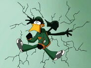 - Agility: In Acmegeddon Part II, he has shown high levels of agility to the extent that he can manage to hold out his own against Optimatus' robots, able to dodge the lasers, despite a great amount of robots, firing at the Duck simultaneously. It is also shown in The Menace of the Mastermind, when Duck overpowers the ninjas in a simulation before, and during Mastermind's takeover of the Loonatics HQ (albeit Duck was creamed at a surprise round that Tech arranged (many weapons and blasters pointing at the Duck the moment when the lights switch on and off again for the former, and with Ace's help for the latter).