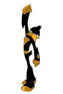 Danger Duck (usually referred to as just Duck) is the deuteragonist of Loonatics Unleashed. He is a descendant of Daffy Duck. He is the spotlight hungry, egotistical member and co-leader of the Loonatics. He wears a black and orange uniform, a pair of blue eyes, and a small mohawk.