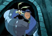 A mounted cannon meant to disintegrate metals. It was used in an attempt to destroy the Trolbot 9000 and later used to shoot down a jet fighter that Time Skip had hijacked from the Acmetropolis military weapons lab.