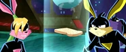 The Loonatics arrive at the now demolished weapons laboratory where they meet Colonel Trench. He tells them of Time Skip's activities and warns them that he will be unable to be stopped if he takes the Trollbot 9000. Colonel Trench then leads them to the room where the Trollbot 9000 is kept, only to find Time Skip got there before them. Before the Loonatics can go after him, Time Skip freezes them and enters the Trollbot 9000.